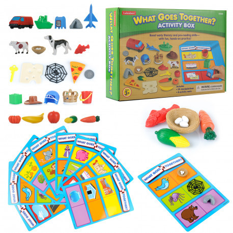 Набір включає 8 карток по три блоки, які, в свою чергу, включають картинку із зображенням персонажа або узагальнюючим поняттям (дорога, небо, озеро, тощо), та порожнім полем, де необхідно розмістити одну з реалістичних пластикових фігурок, що має прямий зв'язок з малюнком. Наприклад, поруч з малюнком миші потрібно покласти фігурку сиру, а там, де намальована дорога – розмістити машину. Встановлюючи відповідності, класифікуючи предмети і сортуючи їх, діти зможуть виявити загальні групи, наприклад, морква, сир, піца – це їжа, а по дорозі їздять машини: легкові автомобілі, вантажівки, спеціальна техніка – це транспорт. Надалі ці знання допоможуть малюкам легко орієнтуватися в навколишньому світі, оскільки, вони вже будуть мати елементарні поняття про його влаштування.